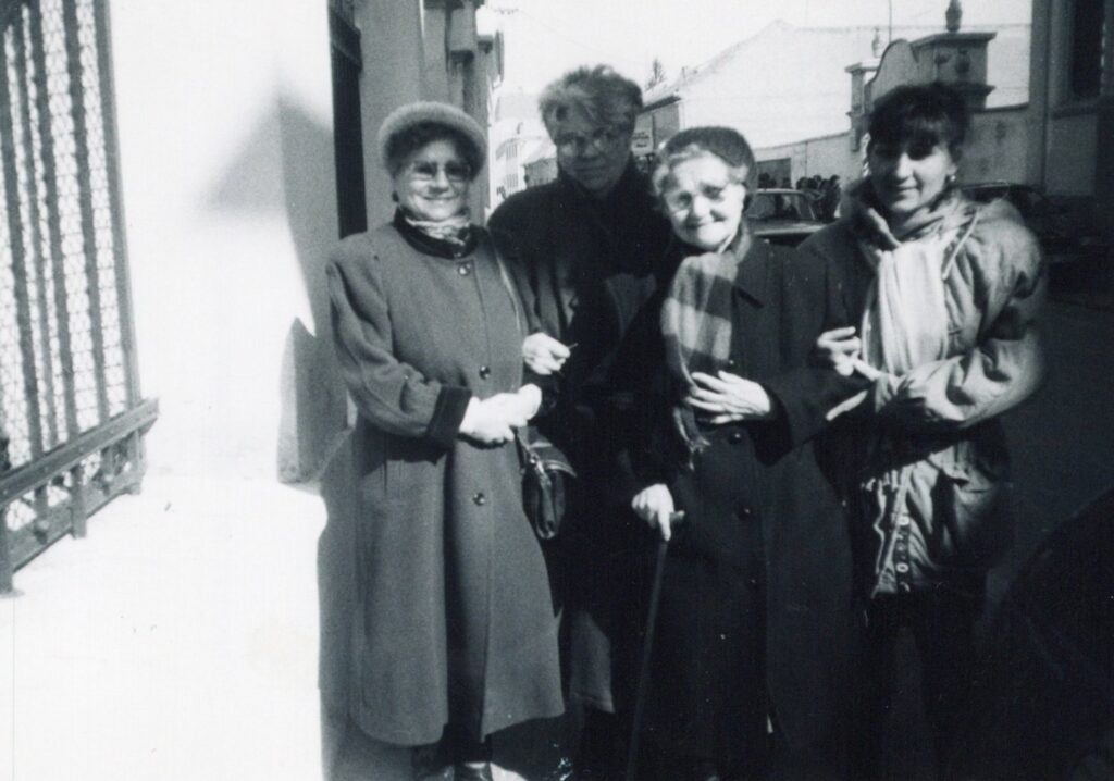 1992. április 5. A Komáromi Protestáns Nőegylet a Pápai Református Gyülekezet vendége. Oláhné Domonkos Ilona, Fekete Ida, Horváth Ilona, Rácz Ilona.