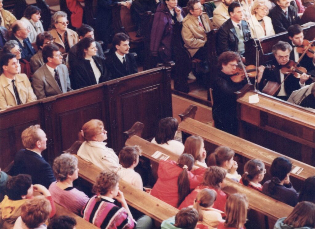 1992. április 4. Erich Bergel és a Kolozsvári Filharmonikusok: A fúga művészete hangzott a szinte megtelt templomunkban.