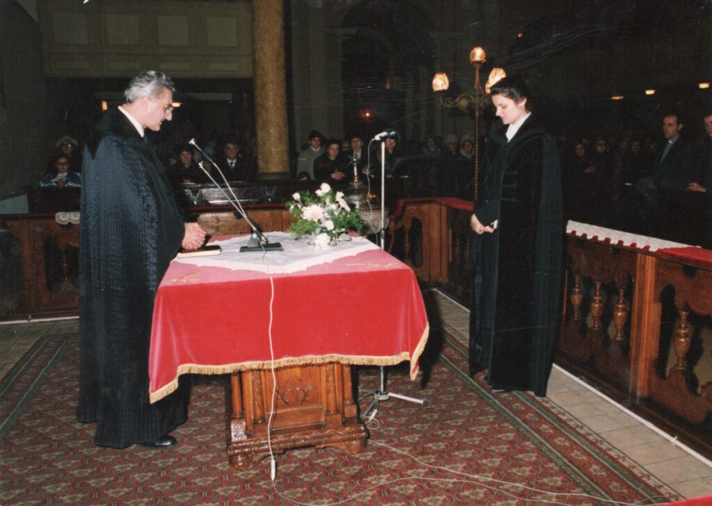 1992. december 13. Fazekas Lászlóné Tamás Zsuzsa kibocsátása lelkészi szolgálatra. Ft. Mikó Jenő püspök, Zsuzsa Fazekas .
