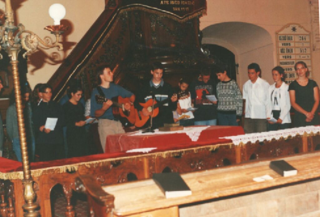 2001.2.18. Konfirmáció Nt. Fazekas László, Fekete Vince, Cséplő Bálint, Kerekes József, Mészáros László (Mészáros László gondnok úr 30 év hűséges gondnoki szolgálat után életének 70. évében 2001. május 7-én visszaadta lelkét Teremtőjének.) gondnokok, Ivicsicsné Cserna Anna, Mónika Kalmár, György Pallag , Pisonné Tücskök Erika, Szabados Péter, Tóthné Dombi Andrea.2001.2.18. Konfirmáció 2001.2.23-25. Bruno van der Vilet, a Belga Nemzeti Lepramisszió, a londoni székhelyű világszolgálat elnöke gyülekezetünk vendége volt. Február 25-én a gyülekezetben igét hirdetett.2001.4.27-30. I. Konfirmandus hétvége a missziós központban, Jókán. A hitvallástételre készülő fiataljaink közösségépítő, hitmélyítő alkalma. 2001.4.27-30. A konfihétvége előadója Varga Róbert a BP. – pasaréti gyülekezet lelkipásztora volt.2001.4.27-30. Köszönet a velünk töltött napokért, szolgálat ért.2001.4.27-30. Az énekekekhez a gitárkísérettel Jenei Ottó kárpátaljai teológus szolgált. Gál Lóránt, Deák Márta, Kahler Niki. Fekete Gergely2001.4.27-30. Konfirmandus hétvége2001.4.27-30. A csapatot elkísérték a gyülekezeti lelkészek, közöttük Rácz Tibor segédlelkész is.2001.4.27-30. A fiatalok ajándékot is kaptak. Virág Dobay Gábor Kasnyik , Színek Katalin.2001.4.27-30. Konfi hétvége csoportkép2001.4.27-30. 2001.4.27-30. A Jókán töltött hétvége utáni vasárnap a konfirmandusok a templomunkban is bizonyságot tettek hitükről.2001.5.20. Konfirmáció Nt. Fazekas László, Fekete Vince , Cséplő Bálint, Kerekes József gondnokok. Cséplő Gyula, Csík Lívia, Hevesi Anikó, Sabina Szatmáriová Cséplőová, Révész Adrianna.2001.5.20. Konfirmáció2001.5.21-25. Evangelizáció – Nt. Unger Károly drávafoki lelkipásztor2001.5.21-25. Evangelizáció – Nt. Unger Károly és Nt. Fazekas László2001.5.21-25. Az evangelizáción több gyülekezeti tagunk is bizonyságot tett hitéről. Az énekeket Kollárovics Péter és Nagy Gábor kísérték gitárral, zongorával.2001.5.27. Konfirmáció Nt. Fazekas László, Fazekas Zsuzsa, Cséplő Bálint, Kerekes József, Fekete Vince gondnokok. Bartal Beáta, Bálint Attila, Bordács Balázs, Csonka Gábor, Deák Márta, Deminger Kitti, Dobay Virág, Fekete András, Fekete Dávid, Fekete Gergely, Gál Lóránt, Győrffy Zsuzsanna, Andrea Illes, Jancsár Szilvia, Jenei Attila, Kahlerova Nikoleta, Kétyi József, Kovács Ágó, Nóra Kovács, Krizan Szabó Andrea, Madarász Sándor, Mihalik Emőke, Mikes Gyula, Mohos Boglárka, Nagy Zalán, Németh Péter, Siffel Mariann, Szathmáry Lilla, Szinek Katalin, Varga András, Thaly Varga Tünde, Velsicz Dániel , Vörös Réka, Zajos Edina.2001.5.27. Konfirmáció 2001.6. 14. Kerekes József gondnok köszönti Fazekas László lelkipásztort 40. születésnapja alkalmából. Oláhné Domonkos Ilona, Rácz Tibor segédlelkész, Fazekas Zsuzsa segédlelkész2001.6.14. Oláhné Domonkos Ilona a Komáromi Protestáns Nőegylet elnöknője köszönti a lelkipásztort.2001.6. 14. Kerekes József gondnok köszöntője 2001. 6.14. Gyülekezetünk egy új palásttal ajándékozta meg lelkészünket2001 júniusa Bibliaórára várva Baráth Erzsébet, Csékus Erzsébet, Fazekas Zsuzsa, Rácz Ilike, Rácz Márta, Nagy Erzsébet, Kerekes József, Cséplő Bálint gondnokok, Kovács Ilona, Berecz Éva, Czékus Dezső, nt. Fekésházy Gyula, Cséplő László, Nagy Antal, Nagy József.2001. 6.29-30. A Komáromi Protestáns Nőegylet kirándulása Oláhné Domonkos Ilona elnöknő vezetésével Sárospatakon Lorantffy Zsuzsanna szül. 400.évf.alkalmából.2001.7.9-14. Csendeshét az Alacsony Tátrában. A hét előadásait Szarka Miklós, a Család és Házassággondozó Szolgálat vezetője tartotta. A képen a gyülekezetünkhöz kötődő résztvevők: Árpád Molnár, Molnár Monika , Gizela Holcsiková, Ágnes Nagy, Máté Fazekas , Laszlo Fazekas, Gál Zsuzsanna, Fazekas Zsuzsa, Szilvia Balog, Balogh Béla, Mátyás Szalay, Szalay Cecília, Erika Gál, Gál Sándor.2001.7.18-22. Ifjúsági tábor Újlóton. Gyülekezetünkből 14 fiatal vett részt Fazekas László lelkipásztor vezetésével.2001.7.18-22. Az előadásokkal Zimányi József tiszanagyfalui, az igei alkalmakkal Fazekas László szolgált.2001. 7.30-8.4. I. Gyülekezeti gyerektábor – Gadóc. 76 gyerek, 16 vezető, a téma Magvető példázata volt. Az érkező gyerekek fogadása:Anyalai Dráfi Anabel Emese, Krisztina Kovács Csiba2001.7.30-8. 4. A Magvető példázata (Fazekas Zsuzsa, Kurucz Éva)2001.7.30-8. 4. Ebédosztás. Boross Kornél teológus, Gál Laura, Ágnes Nagy , Máté Fazekas , Dékány Csilla, Gál Zsuzsanna, Füri Zsóka2001.7.30-8.4. Az esti missziós történtet Szegedi Kis István életét mutatta be korhű jelmezekben. A történetet Szalay Cecília és Dráfi Anabel Emese dolgozták ki, gyülekezetünk ifjúsága adta elő. Emlékezetes esték voltak. – Cecília Szalay, Németh Péter, Szalay András, a háttérben a címszereplő: Viola András.2001.7.30-8.4. Németh Péter, Szalay András, Virág László , Anyalai Réka.2001.7.30-8.4. A megkínzott Szegedi Kis István2001.7.30-8.4. Mező Ferenc (Csiffáry Zoltán) közbenjárására Peruiz vajdánál (Csízi Balázs) a török által fogva tartott Szegediért.2001.7.30-8.4. Egy kis „Ki mit tud?” Tímea Tim Nagy, Christianne Date , Anyalai Réka2001.7.30-8.4. Délutáni kézművesség – Ágnes Nagy , Gál Zsuzsanna2001.7.30-8.4. Kézműveskedés Ódor Zsuzsika hitoktatónkkal – Pallag Boglárka, Bugyi Ildikó, Móricz Orsolya.2001.7.30-8.4. Laszlo Fazekas, Tímea Tim Nagy , Gál Zsuzsanna , Csilla Czibor.2001.7.30-8.4. „Ki mit tud?” Frederika Koková , Varjú Csaba , Gál Zsuzsanna2001.7.30-8.4. A negyedszázados lap magáért beszél 🙂2001. 10.14. Gyülekezetünkben új segédlelkész, György András kezdte meg szolgálatát.2001.10.28. Az 1816-ban épült 