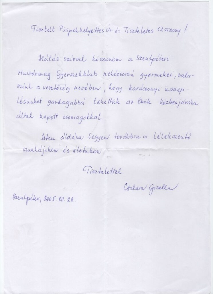 2005.5.8. Konfirmáció – Peter Balogh , Baráth Kinga , Enikő Beke , Bencsik Nikolett, Édes Gergő, Fazekas Lilla, Győri Péter, Horváth Márta, Keszegh Júlia, Kovács Zsolt, Magyarics Andrea, András Mátyás , Méri András, Molnár Gábor, Nagy Ádám, Nagy Krisztina, Öllős Géza, Vivien Sebedovsky Nagy , Szalay Réka, András Szuri , Vetter Judit.2005.5.8. Konfirmáció 2005.5.28. Gyülekezetünk zenekara, a Kezek szolgálata a Keresztyén Zenekarok IV. Találkozóján.2005.7.7-12. Gyülekezeti Ifitábor Martoson, a Feszty-parkaban. (31fiatal, vezetők: Tatár István, Fazekas Zsuzsa, Fazekas László)2005.7.7-12. Gyülekezeti Ifitábor2005.7.7-12. Gyülekezeti Ifitábor2005.7.7-12. Gyülekezeti Ifitábor2005.8.22-27. Gyülekezeti gyerektábor – Virt. (78 gyerek, vezetők: Ódor Zsuzsanna, hitoktató, Katalin Mészáros Pallag, Tompa Veronika, segédlelkész, Tatár István, segédlelkész, Gál Lóránt, Péter Fóti , Katalin Hubač Bári, Hupka Adrián, Fazekas Zsuzsa, Fazekas László) A délelőtti alkalmakat Dráfi Anabel Emese hitoktatónk tartotta Jézus a világ világossága címmel.Előkészületek a táborra Dráfi Anabel Emese, Gál Lóránt2005.8.22-27. – Ki teremtette ezt a világot? …Atyánk, Istenünk…2005.8.22-27. Gyülekezeti gyerektábor – Virt.2005.8.22-27. Gyülekezeti gyerektábor – Virt. – Esti játék2005.8.22-27. Csoportbeszélgetés2005.8.22-27. Az elhagyhatatlan méta.2005.8.22-27. Az éjszakai Kincskeresés útvonalát a Tatár István által faragott töklámpások világították meg..2005.8.22-27. A „faragó mester”2005.8.22-27- Minden este missziós történetet játszottak a fiatalok Szegedi Kis István életét bemutatva Péter Fóti, Pallag Boglárka2005 nyara. A marcelházai és a komáromi ifisek találkozója, Tompa Veronika, Rácz Elemér Jolán és a fitatalok.2005 nyara. A marcelházi és a komáromi ifisek találkozója2005 nyara. A marcelházi és a komáromi ifisek találkozója Kiss Miklós2005 nyara2005.10. 16. Az Élő Víz szervezésében az Idősek napját tartottuk. A templomi istentisztelet után autóbusz vitte az érdeklődőket a Timóteus ház udvarára…2005.10.16. …együtt imádkoztunk a Timóteus házért… 2004-ben Komárom város képviselőtestülete 1 szlovák korona szimbolikus árért eladta gyülekezetünknek az egyház korábbi tulajdonát képező Timóteus házat, melyet a Benes-dekrétumok alapján tulajdonított el az állam.2005 októbere Holland vendégeinknek Fazekas László mutatja meg az épületet. A holland református egyház évekig pénzadománnyal segítette a felújítási munkálatokat.2005 októbere2005.októbere2005.októbere2005 – A visszakapott épület felújítása és a terület tereprendezése több éven keresztül zajlott (későbbi fotók :cca. 2008-20010). Emelett Nanassy Ildiko éveken keresztül szervezte a művészeti alapiskolában a jótékonysági koncerteket a Timoteus ház javára.2005-2010 között. Timóteus2005-2010 között – Timóteus Ház2005-2010 között – Timóteus Ház2005-2010 között – Timóteus Ház2005-2010 között – Timóteus Ház2005.10.20-23. – Konfirmandusok hétvégéje, Alistál. A komáromiakhoz csatlakoztak a bátorkeszi konfisok is. (vezetők: Czinke Tímea, Tatár István, Fazekas Zsuzsa)2005.10.20-23. Konfirmandusok hétvégéje, Alistál2005.12.11. Szegedi Kis István születésének 500. évf. alkalmából az ifisek színdarabbal készültek és a presbitériumnak, valamint a szülőknek mutatták be.2005. 12.11. A címszereplő Szegedi Kis István: András Szuri2005.12.11. Szegedi Kis István születésének 500. évf. alkalmából az ifisek által készített színdarab.2005.12.11. Szegedi Kis István születésének 500. évf. alkalmából az ifisek által készített színdarab.2005.12.11. Örömzene az előadás után.2005.12.11. Szeretetvendégség, amit a szülők készítettek2005.12.11. Fekete Éva , a darab rendezője: Dráfi Anabel Emese és írója:Fazekas Zsuzsa.2005. 12.20. Németországból hozott karácsonyi cipősdoboz csomagok osztása a szentpéteri Mustármagocska gyermekei számára is.2005.12.20. Németországból hozott karácsonyi cipősdoboz csomagok osztása a szentpéteri Mustármagocska gyermekei számára is.2005.12.20. Németországból hozott karácsonyi cipősdoboz csomagok osztása a szentpéteri Mustármagocska gyermekei számára is.2005.12.20. Köszönőlevél